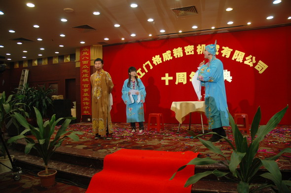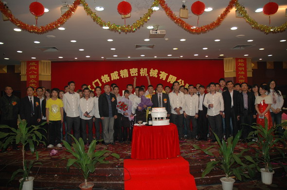 2012年3月25日是江門格威精密機械有限公司成立十周年的大喜之日,為了慶祝十年廠慶,公司組織了一系列豐富多彩的慶典活動,如出公司廠報,出畫冊,制作公司發(fā)展歷程的視頻,25日晚還組織了隆重的聚餐、娛樂表演暨2011年度優(yōu)秀員工頒獎和十年老員工頒獎活動。全廠員工歡聚一堂,在大家的歡聲笑語中,在高層領導和各位同仁的觥籌交錯中,我們的慶典活動在當晚八點鐘圓滿結束了。