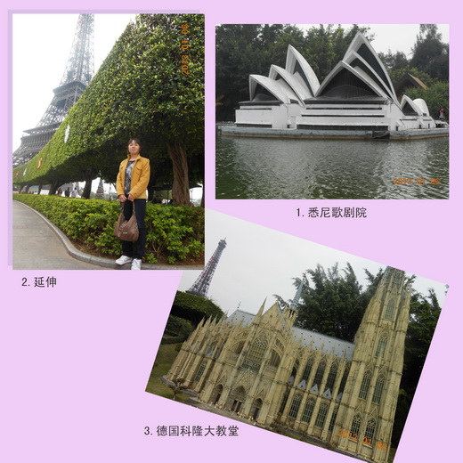 美名其曰世界之窗,那縱然是世界各地自然風(fēng)光與人文景觀的一個集合體。世界之窗門外廣場上的標(biāo)志,就是由玻璃構(gòu)建成的金字塔,上面鑲著由江澤民同志提詞的“世界之窗”四個大字;緊接著映入眼簾的便是聞名于世的法國巴黎埃菲爾鐵塔,雖不能與真正的埃菲爾鐵塔相媲美,但世界之窗的鐵塔也是以1比3的比例模仿真正的鐵塔鑄造,站在塔下,讓人有如觀龐物之感,便迫不及待的想要登到塔頂,一觀山河之秀美。隨著登頂?shù)碾娞菀徊讲铰噬杏X猶如接近天際,只感到腳下的萬物越來越小,便可嘆人的創(chuàng)造力是如此的偉大。通過塔頂?shù)耐h(yuǎn)鏡可與香港隔海相望,香港正如白茫茫的大海之上浮動的一枚璀璨的明珠,明亮且耀眼,與大陸貌似相隔甚遠(yuǎn),但我們的根是在一起的。再回過頭來俯視深圳,“會當(dāng)凌絕頂,一覽眾山小”甚是妙哉,將深圳的繁華盡收眼底,深吸一口天地之氣,悵然若揭,一切浮華虛妄都煙消云散,剩下的只有人與人之間的真誠、赤膽及和諧,仰觀宇宙之大,沒有什么能夠大過眉宇間的一雙亮睛,俯察品類之盛,沒有什么能夠盛過現(xiàn)掠盡繁華之后這上不接天,下不接地的一聲長嘆。